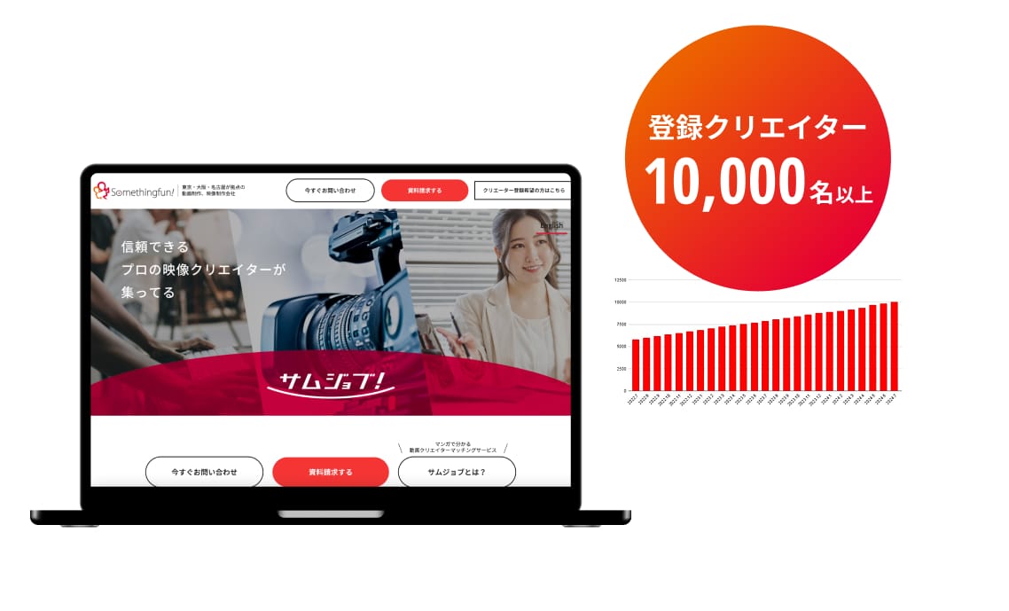 動画クリエイター登録者数10,000名以上いるサムシングファンのクリエイターネットワークを活用することができます。