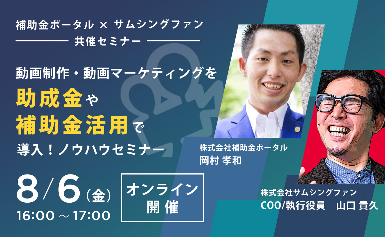 動画制作・動画マーケティングを、助成金や補助金活用で導入!!ノウハウセミナー