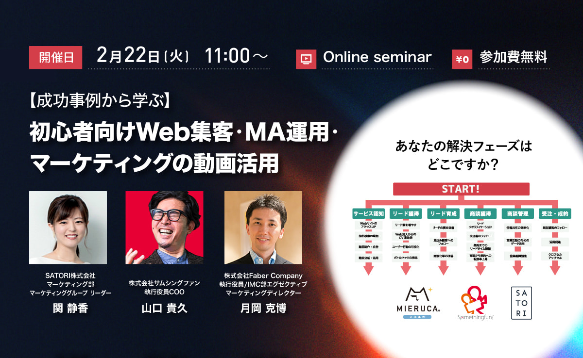 「Webマーケティングを担当することになったけど、初心者なのでどこから始めればよいか分からない」「手探りで様々な施策に取り組んできたけど、成果が出ているのかイマイチ分からない」そんな方に向けて、Web集客・MA活用・マーケティングの動画活用をまとめて1時間で解説するセミナーです。