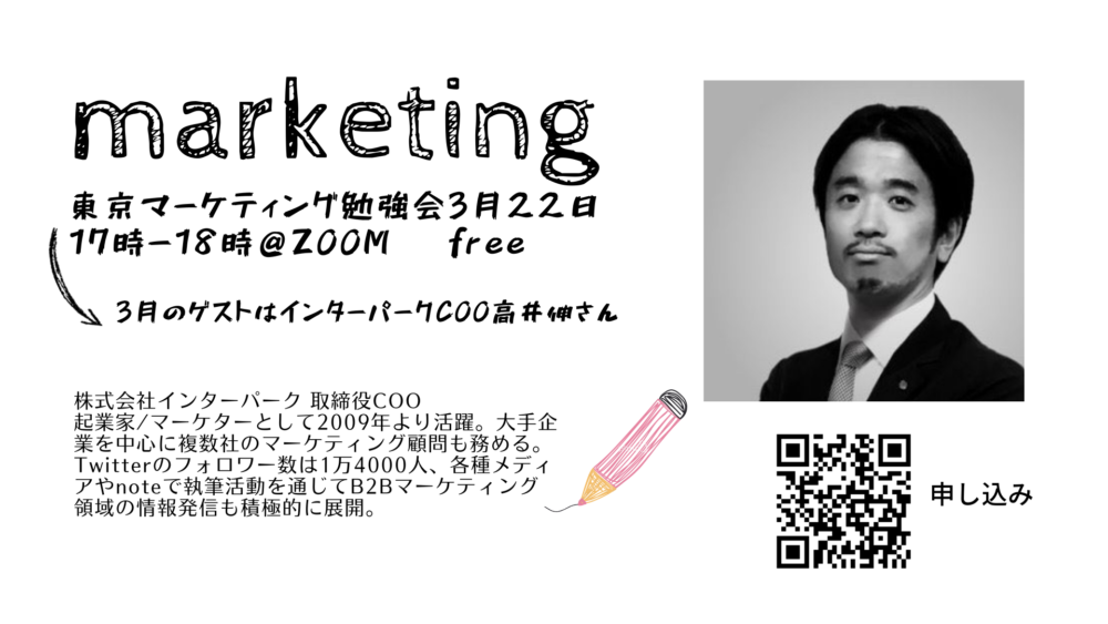 サムシングファンが主催する東京マーケティング勉強会に、1000社以上の企業に活用される顧客管理システム「クラウドサービスサスケ」を展開するインターパークCOOの高井 伸さんが講師として登壇いただきます。